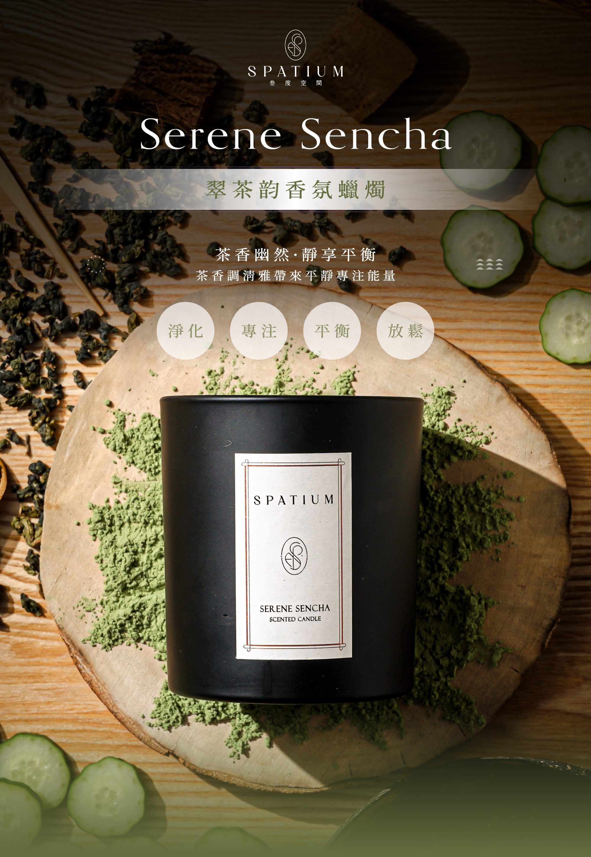 翠茶韵香氛蠟燭以茶香調為主軸,融合小黃瓜清新氣息與綠茶、茉莉的細膩香韻,帶來平靜專注的能量。