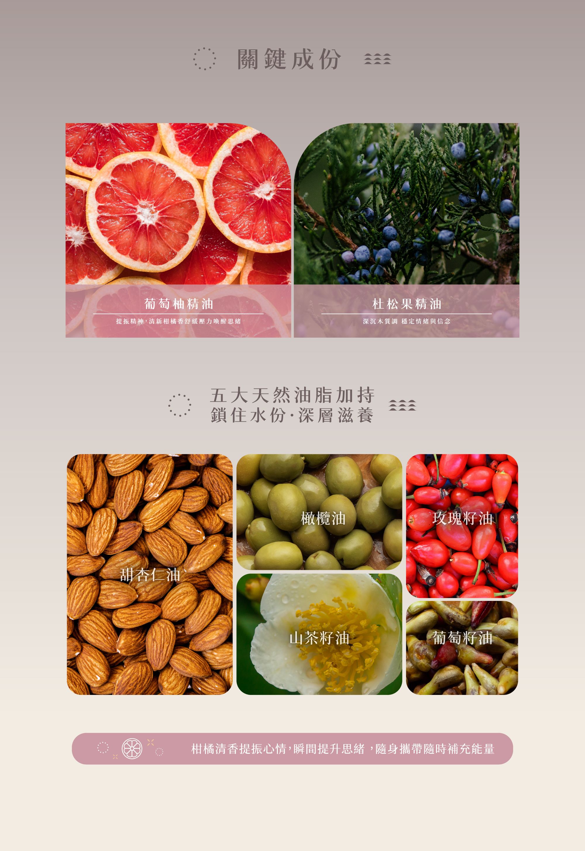 ●關鍵成份嚴選葡萄柚精油及杜松果精油