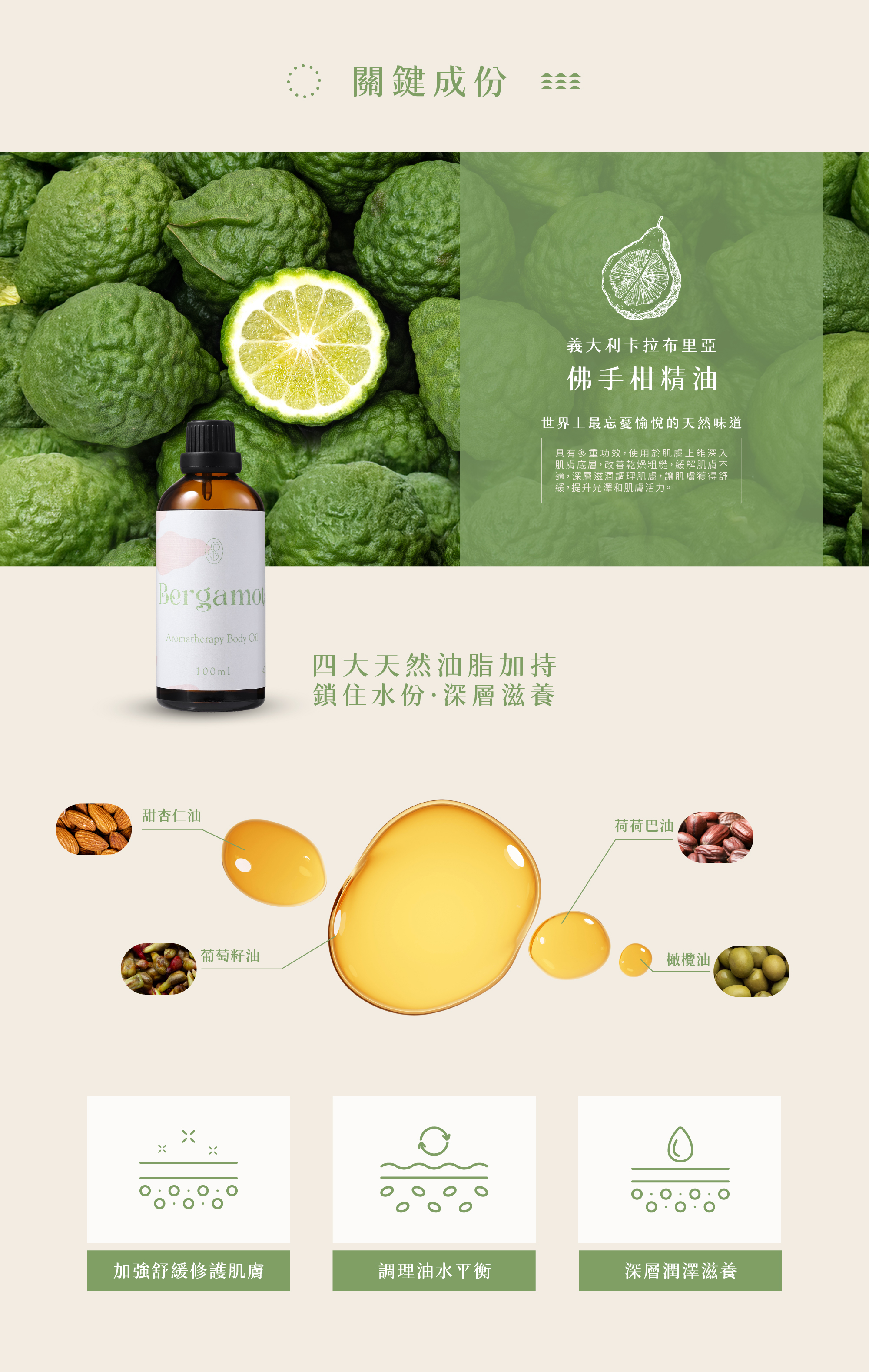 ●關鍵成份嚴選來自義大利的卡拉布里亞佛手柑精油
