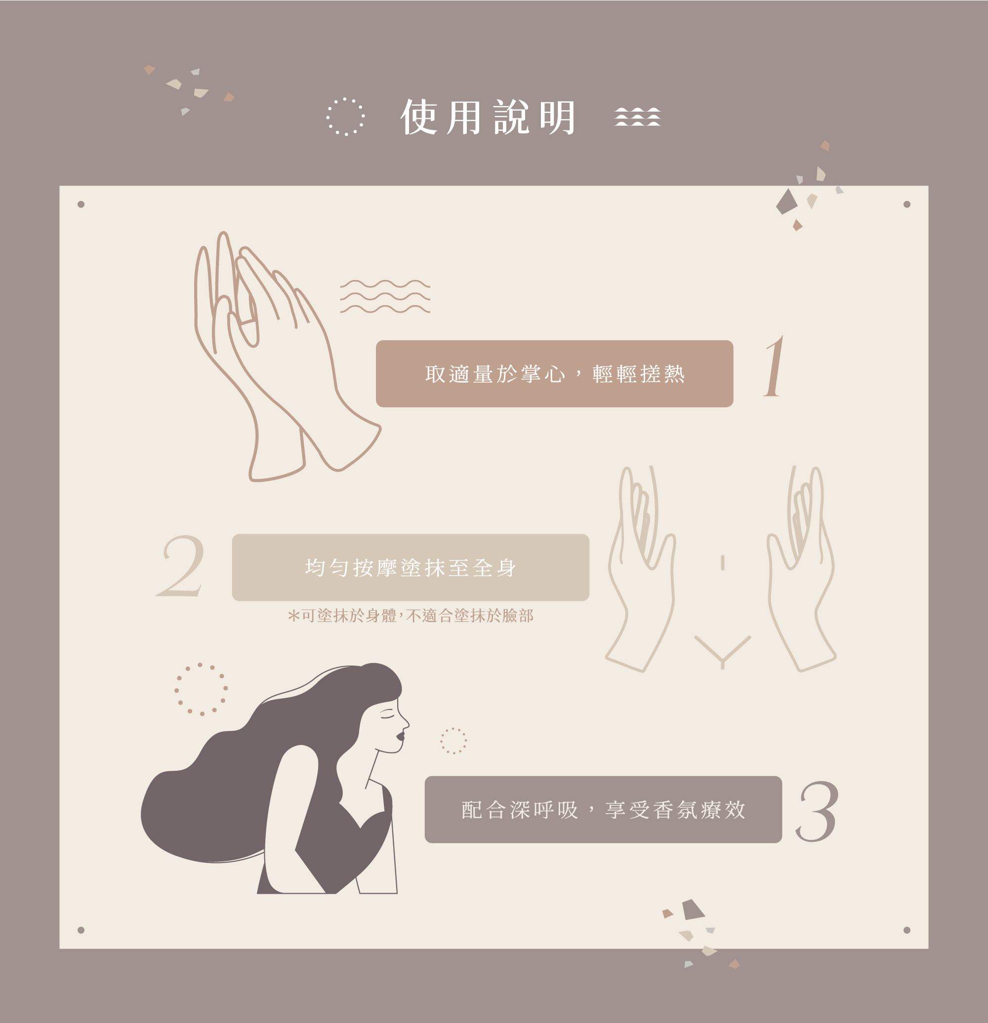 ●使用方法:可塗抹於身體,不適合塗抹於臉部