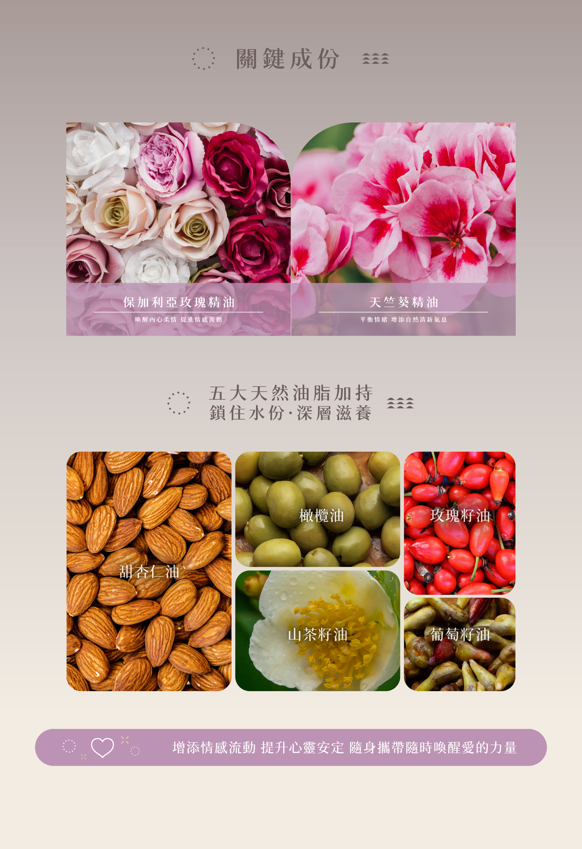 ●關鍵成份嚴選保加利亞玫瑰精油及天竺葵精油